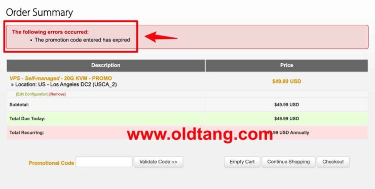 搬瓦工优惠码提示已过期 The promotion code entered has expired,目前所有优惠码均已失效